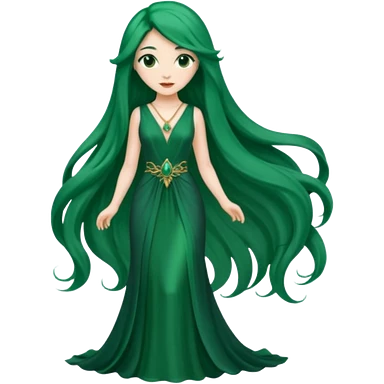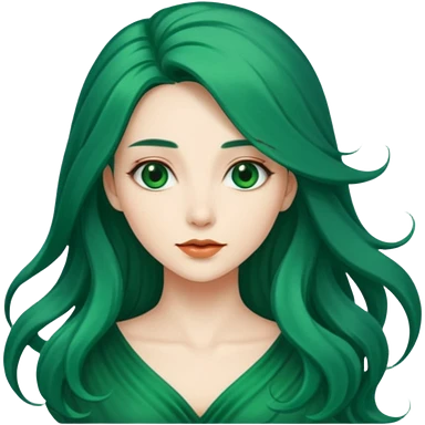 Woman with Long Emerald Hair – flowing deep-green hair, elegant look emoji | AI Emoji Generator