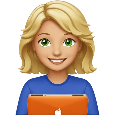 woman tan skin long blonde hair with laptop, blue eyes emoji
