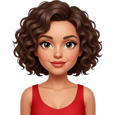 Red dress Woman with Short curly hair, thick lashes and glossy lips emoji