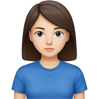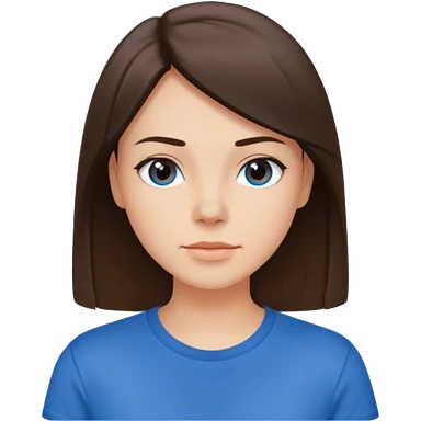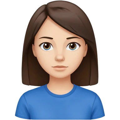 young brunette brawn-eyed woman with straight hair with a blue t-shirt with emoji