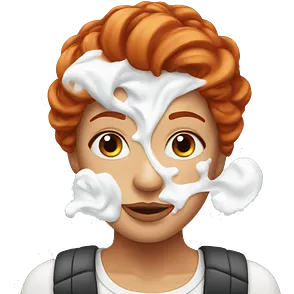 Blonde woman with a towel on her head and a facial muscles emoji
