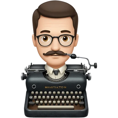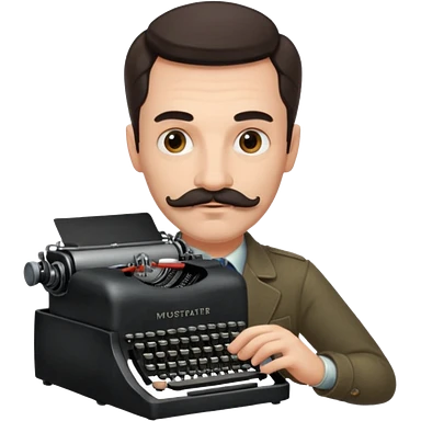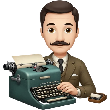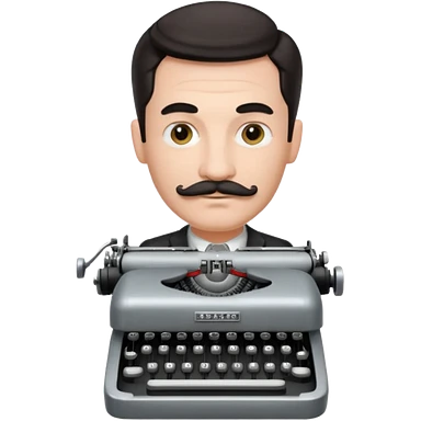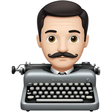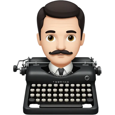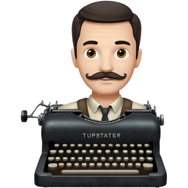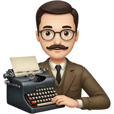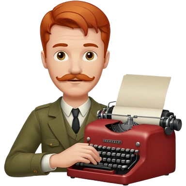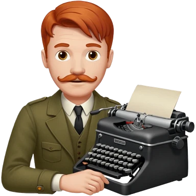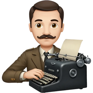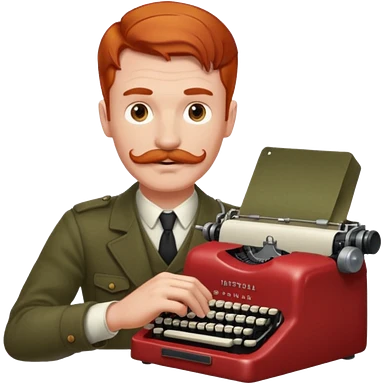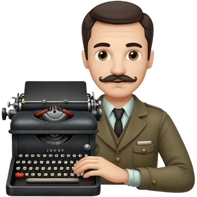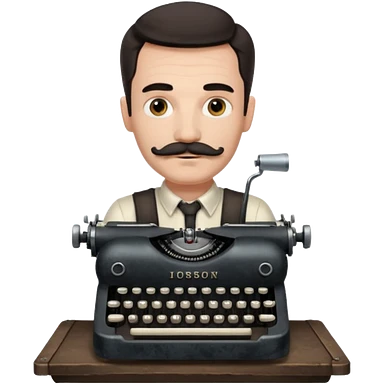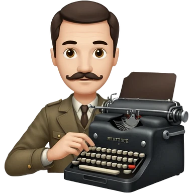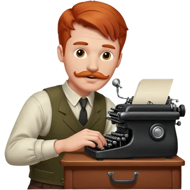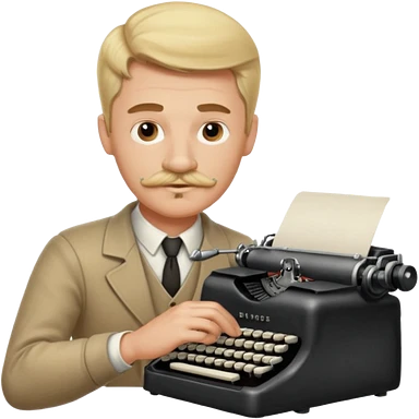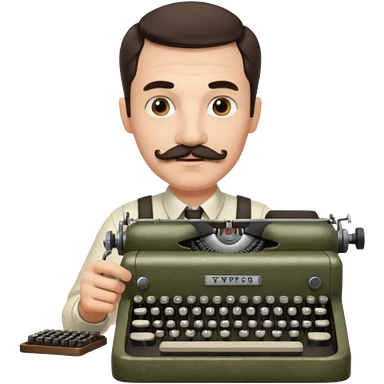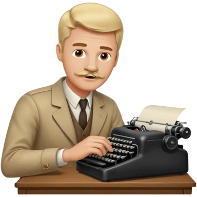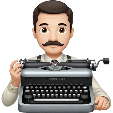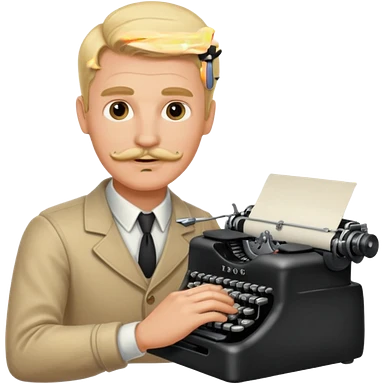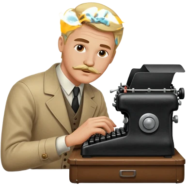 white man journalist typing on a vintage typewriter, press badge on hat emoji