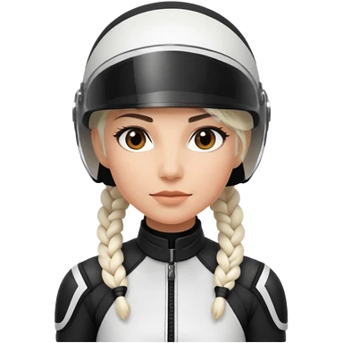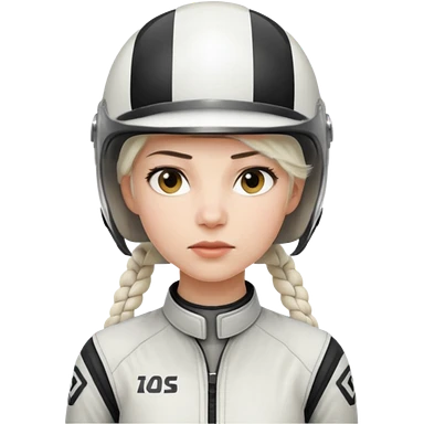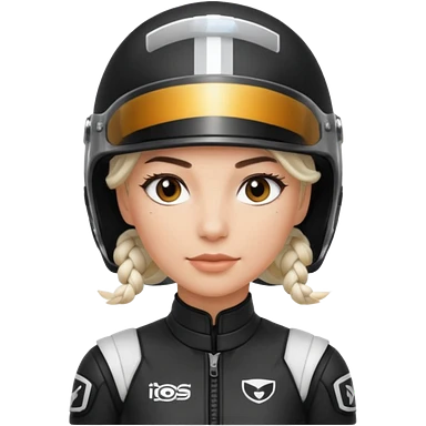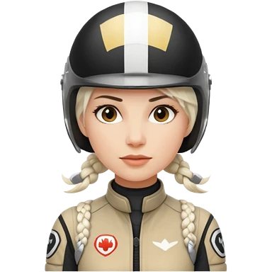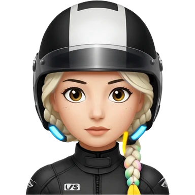 woman with white braided hair in blue racer helmet emoji | AI Emoji Generator