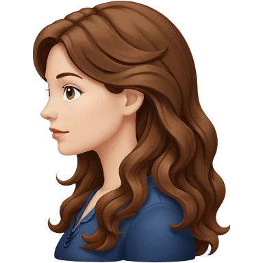 A white woman in profile with long, wavy brown hair emoji