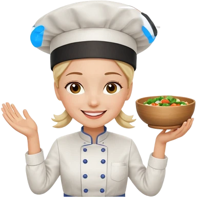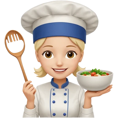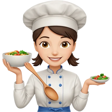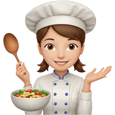 Italian woman chef in her 40's smiling wearing a chef uniform emoji