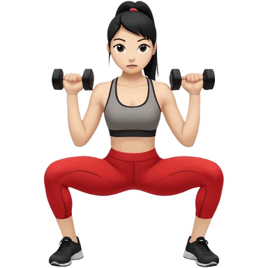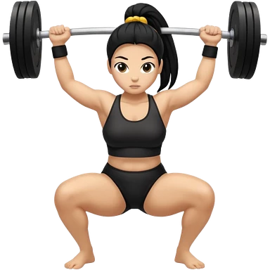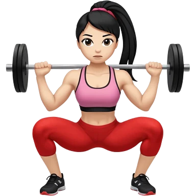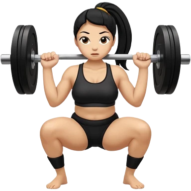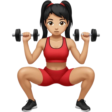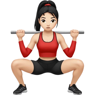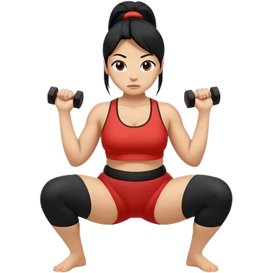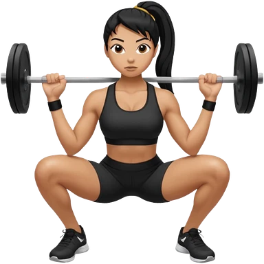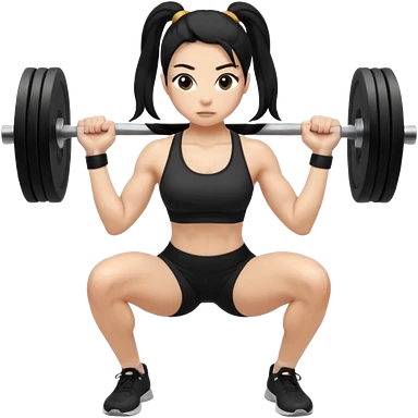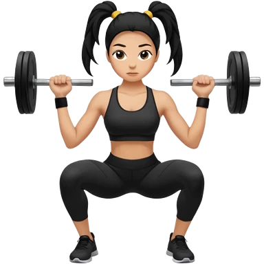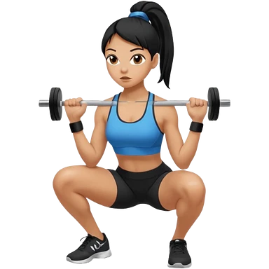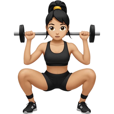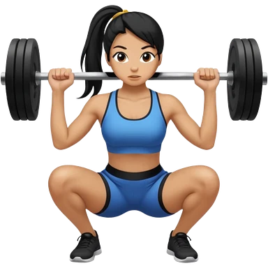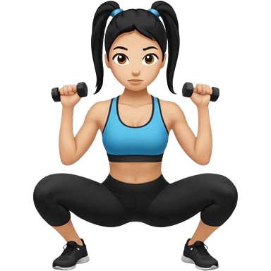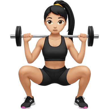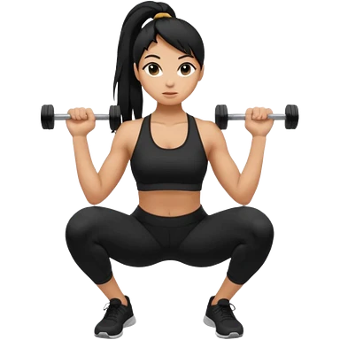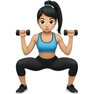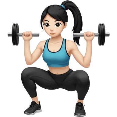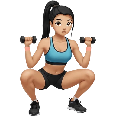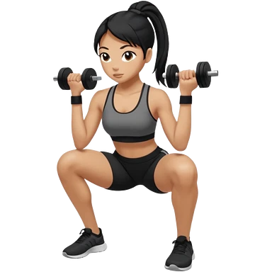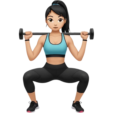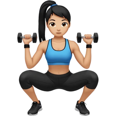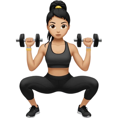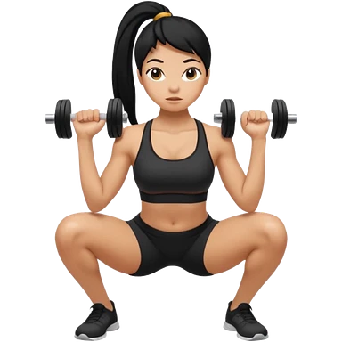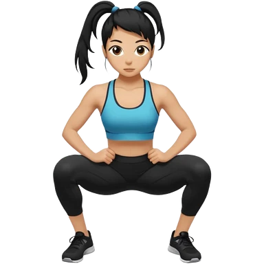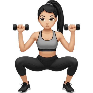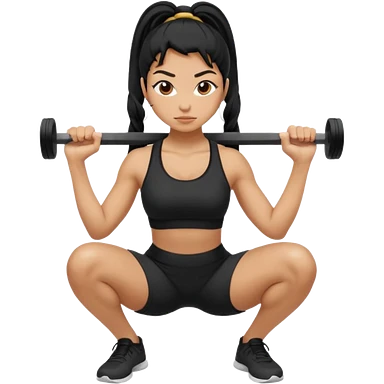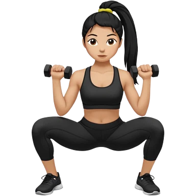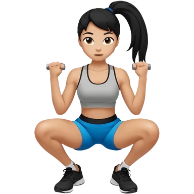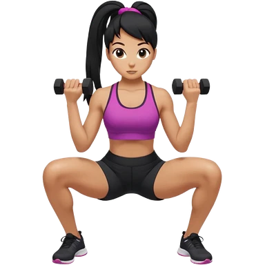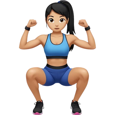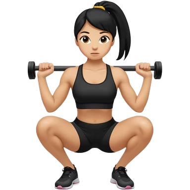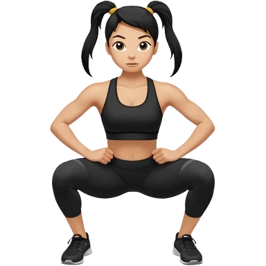 Women with long black ponytail doing a squat with no weights emoji