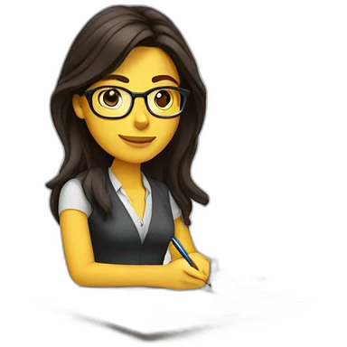 White woman with long dark brown hair using glasses writing emoji