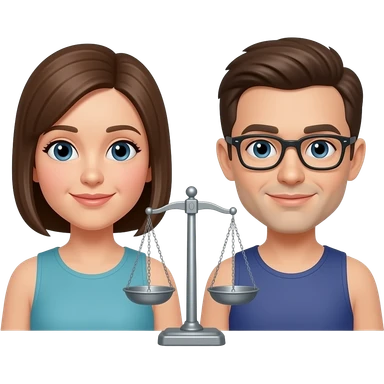 a short tearful woman with dark hair and shortalls trips over the power plugin of a standard upright vacuum. A taller man with long dark hair calmly looks on. emoji