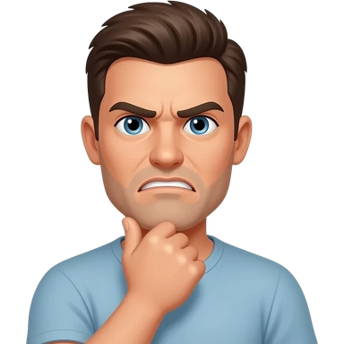 Guy with grumpy face, holding her fist up to, just below, her chin with STFU coming out of a word bubble emoji