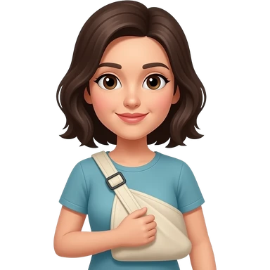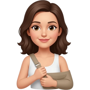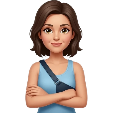 Girl with long black hair wearing soft pink tank top and sling navy blue longchamp bag emoji