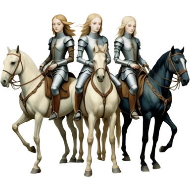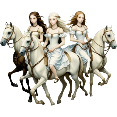 "galora green blonde alien woman" in victorian red, elegant dress, full body, rides golden and white "horse" emoji