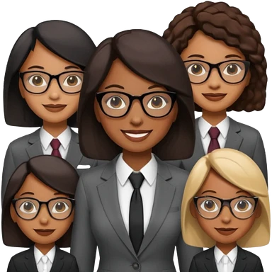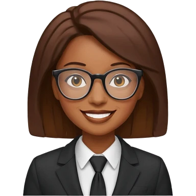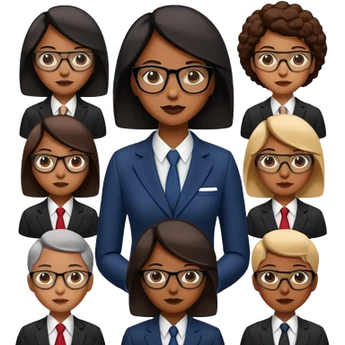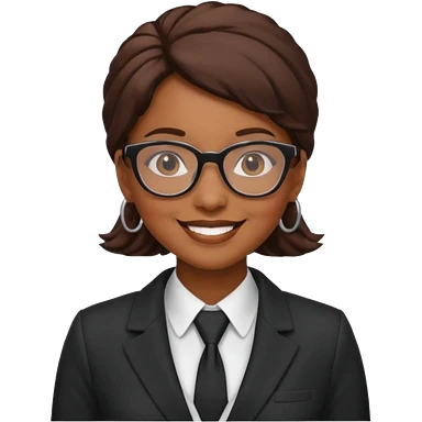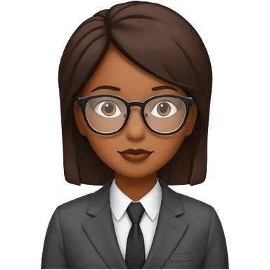 Southeast Asian woman, overweight, dressed in a suit, wearing glasses, black curly hair emoji