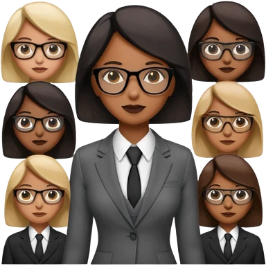 sophisticated white woman with glasses and long dark hair wearing a suit emoji
