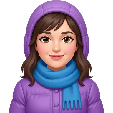 women in purple winter clothes with blue scarf emoji
