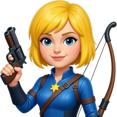 WOMEN HUNTER WITH YELLOW HAIR AND GUN AND BLUE costume emoji