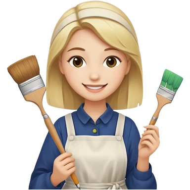 Painting Hold. Women painting smilling Cheveux roux emoji