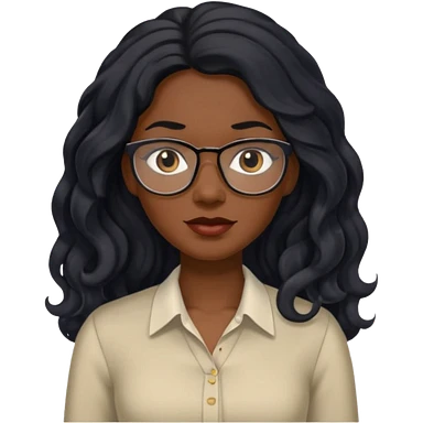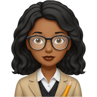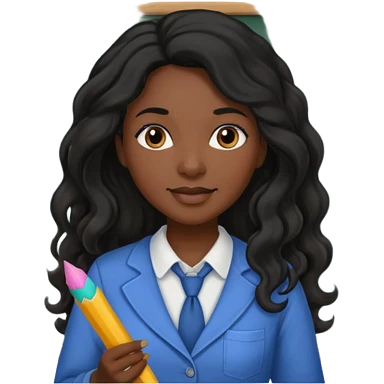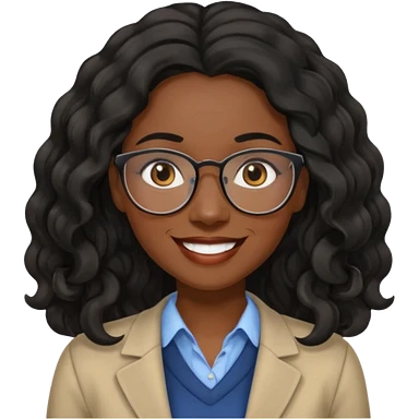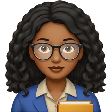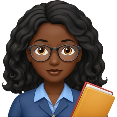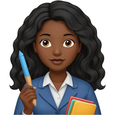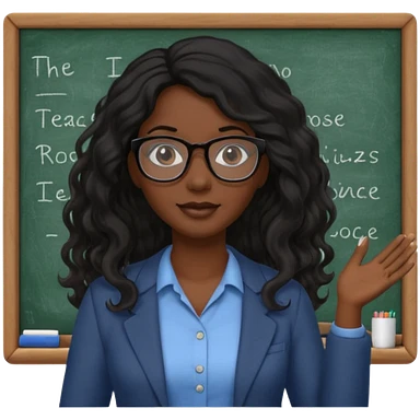 Black women teacher with black long wavy hair chalkboard background and no eyeglasses emoji