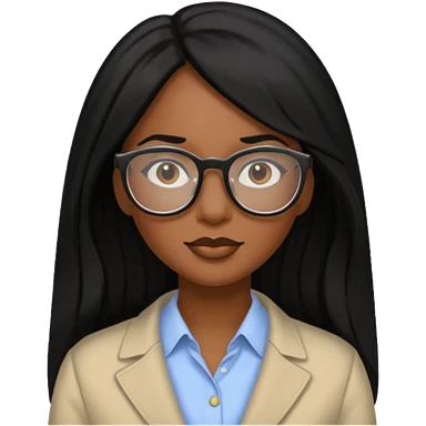 Fair skinned pretty woman with long straight black hair with sun glasses and blue teacher uniform emoji