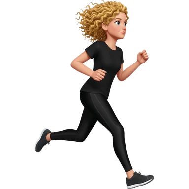 blond curly hair running woman in black long leggins and black t-shirt emoji