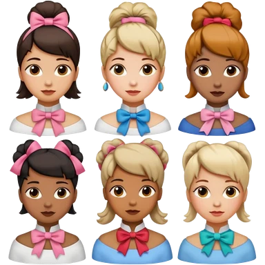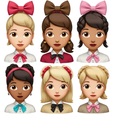 women with neckBow, different hair style. emoji