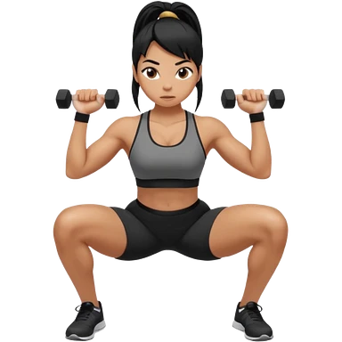Women with long black ponytail doing a squat with no weights emoji