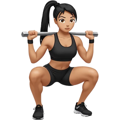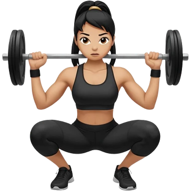 Women with long black ponytail doing a squat with no weights emoji | AI Emoji Generator