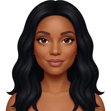 Tiffany Haddish with a long black wig and her mole on her face on your left side under her eye emoji