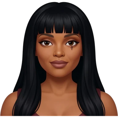 Lightly tan woman with black long hair brown eyes full lips and dramatic long dark eyelash extensions and a small mole on her upper left cheek emoji