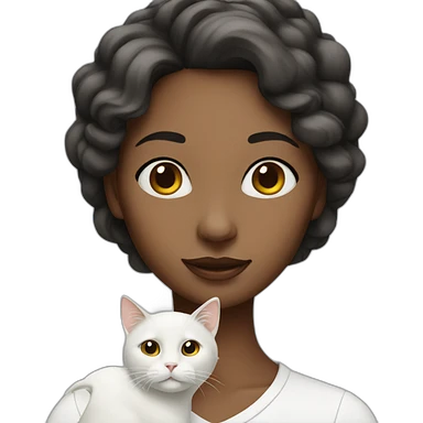 Woman with brown hair brown eyes fair skin with white cat with blue eyes emoji