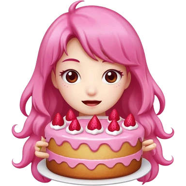 kawaii woman holding pink runny gooey strawberry jam monster cake emoji