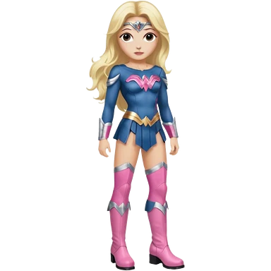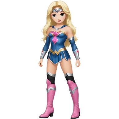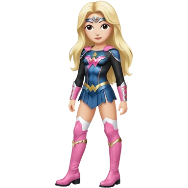 Wonderwoman, long blond hair with pink highlights, black-pink leather outfit, white knee high boots emoji | AI Emoji Generator