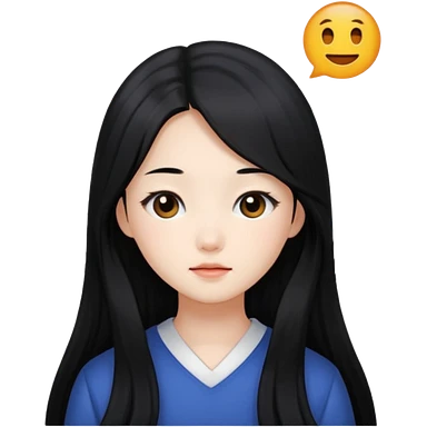 Wonyoung, long black hair , cat doe eyes , heart shape lips and oval face shape emoji