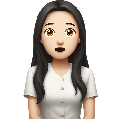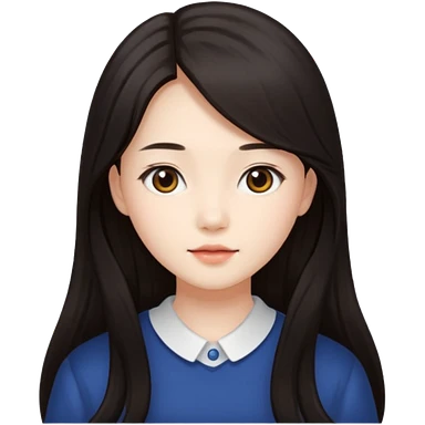 Wonyoung, long black hair , cat doe eyes , heart shape lips and oval face shape emoji