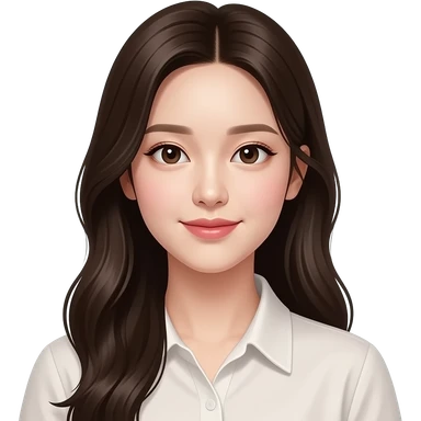 Wonyoung, long black hair , cat doe eyes , heart shape lips and oval face shape emoji