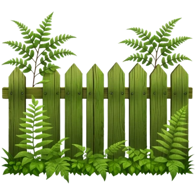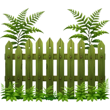 wooden fence and plants, ferns emoji
