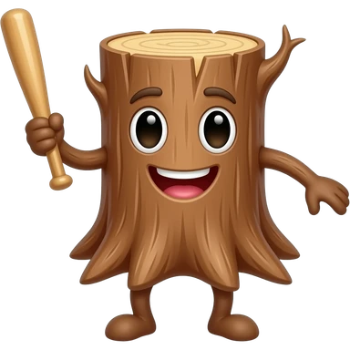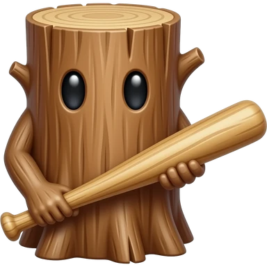 Wood log with a smiling face holding a baseball bat. emoji | AI Emoji Generator