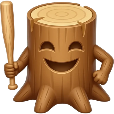 A big wood log that is smiling with a wooden bat it should also have wooden legs emoji