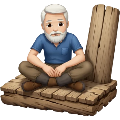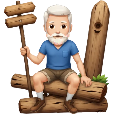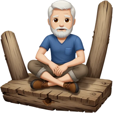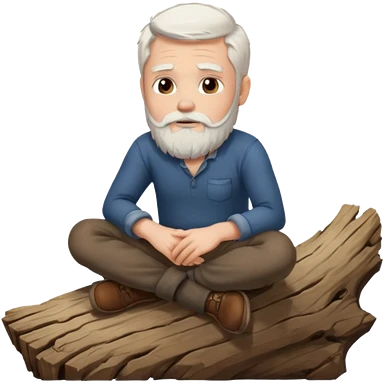 A white haired man with a beard sitting on a piece of wood emoji