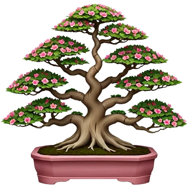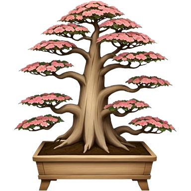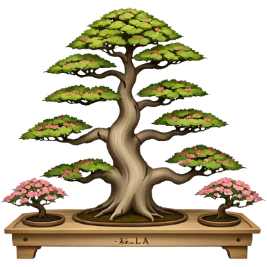 Wide Three tiered bonsai stand, shelving nine maple specimens and several smaller azaleas, frame made of oaken palette wood emoji