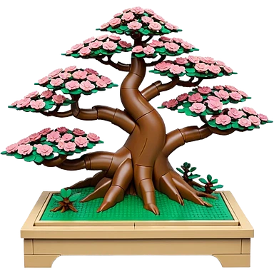 Wide Three 7-tiered Lego bonsai stand, shelving nine maple specimens and several smaller azaleas, frame made of oaken palette wood emoji