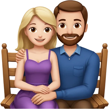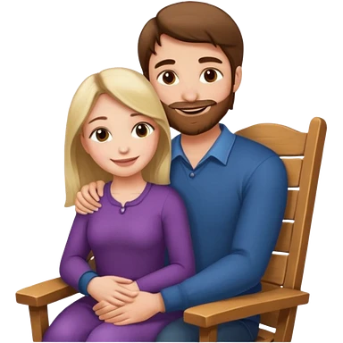 A woman sitting on a man's lap in a wooden chair face to face emoji