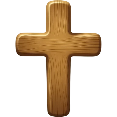 A rustic wooden cross with unevenly draped light-colored cloth, longer on the right side. Behind it, a subtle wreath of green leaves adds depth. The design is simple and symbolic. emoji