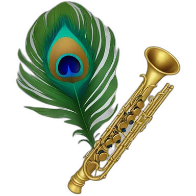 Wooden flute with peacock feather emoji | AI Emoji Generator