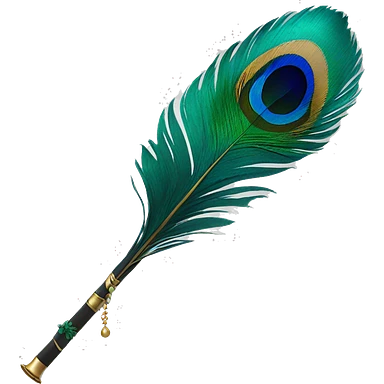 "A small, beautifully designed wooden flute with intricate golden carvings, inspired by Lord Krishna's divine flute. The flute has a gentle curve, a peacock feather elegantly placed near one end, and delicate floral engravings along its body. The design should be minimal yet artistic, suitable for an emoji, with a golden-brown wood texture and subtle shine. The background should be plain or softly glowing to highlight the flute's beauty." emoji
