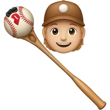 Thick wooden stick with a smiling face holding a baseball bat. emoji