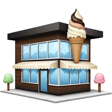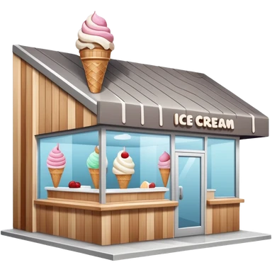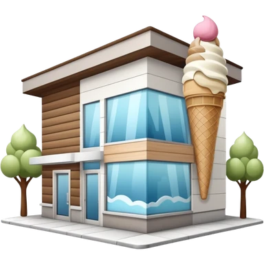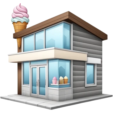 ice cream store at an angle, modern building wood, gray, white materials modern, at an angle emoji