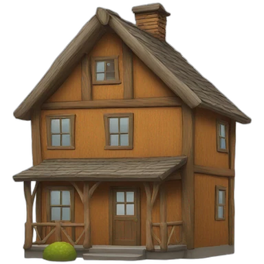 Front facing family house made from bricks and wood, give it a pretty, and cute pastel theme emoji