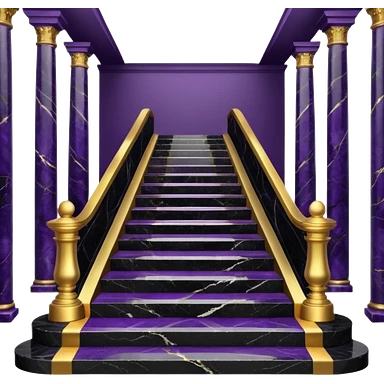 Luxurious black marble hallway stairs with gold and white accents with with violet accents emoji