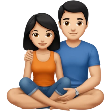woman with dark brown hair in pigtail braids, blunt cut bangs, chubby, brown eyes, smiling without teeth showing emoji