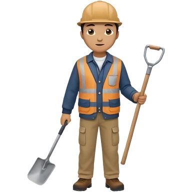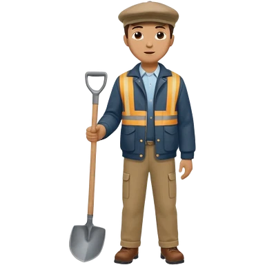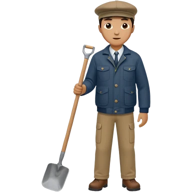 male worker 1950, wearing a flat cap, jacket and trousers, standing holding a shovel emoji